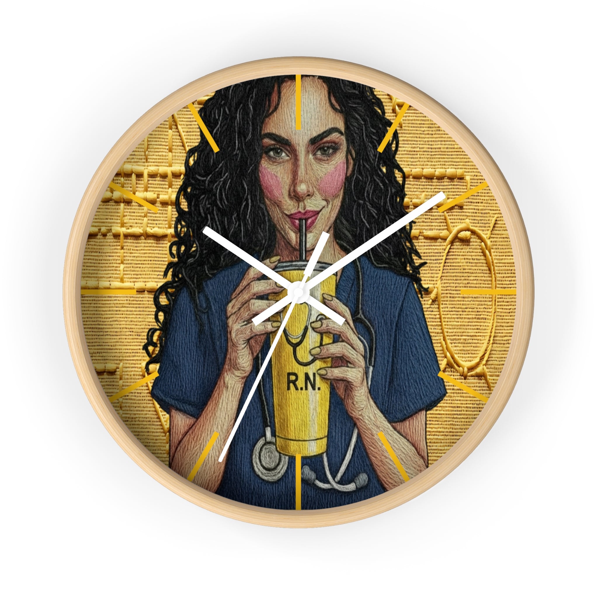 Wall Clock —RN Nurse Drinking Illustration | Gift for Nurses
