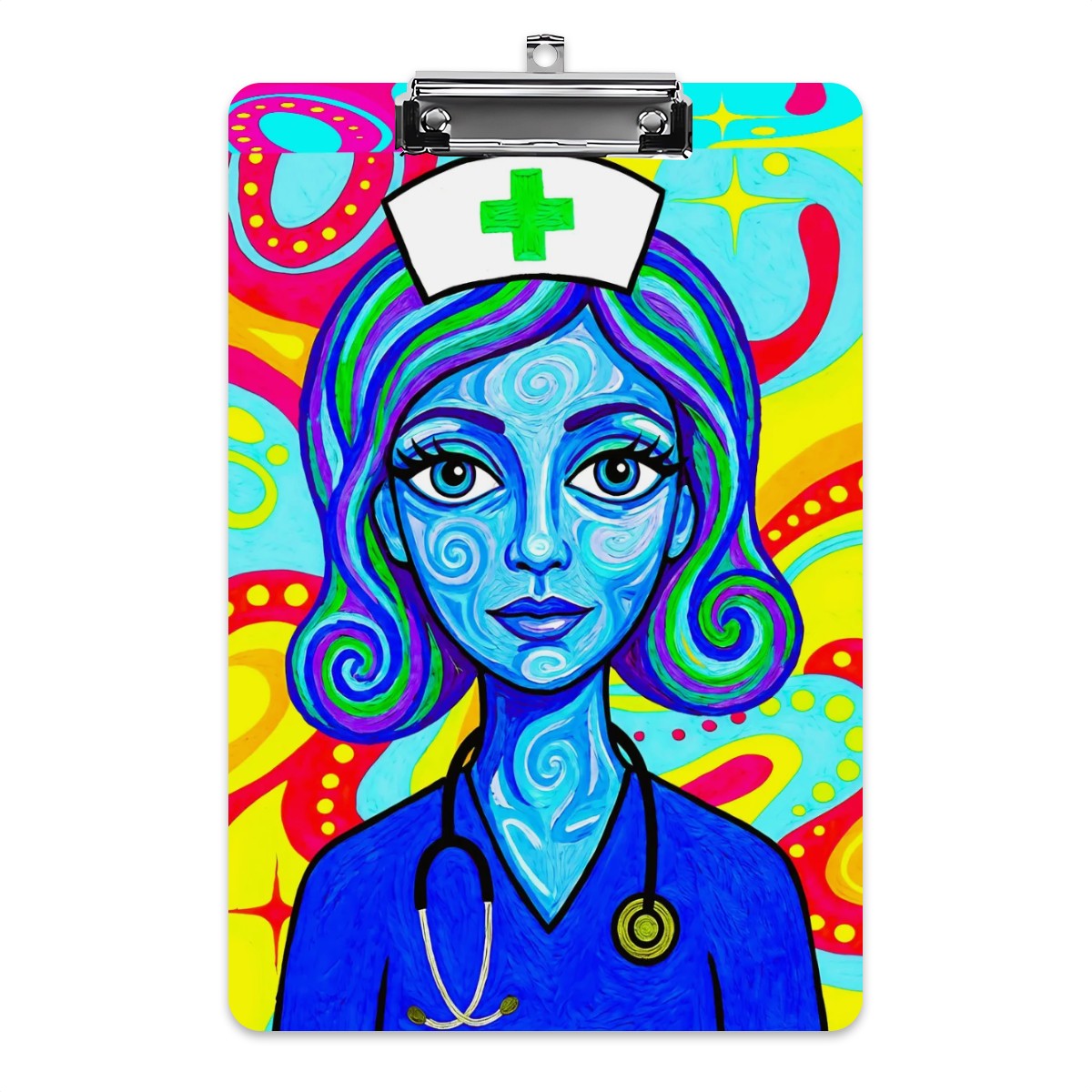 Daily AccessoriesBold, surreal, and unapologetically expressive—this clipboard showcases a futuristic nurse with swirling blue skin, hypnotic eyes, and radiant...Regular price $55.77 USDSale price $55.77 USD Regular priceUnit price per -