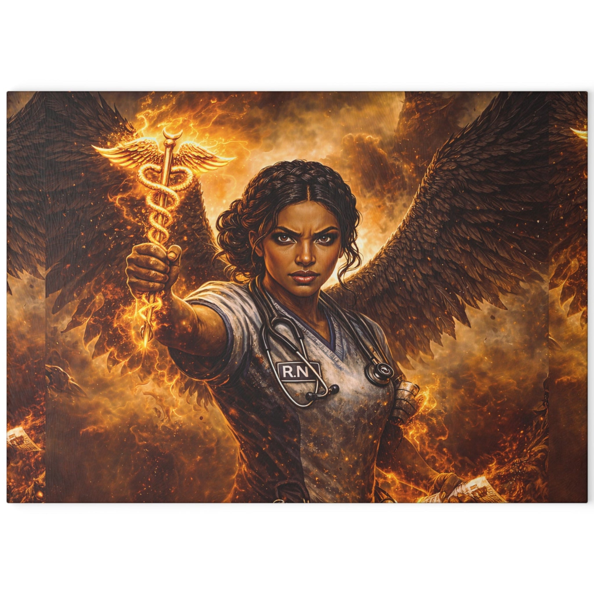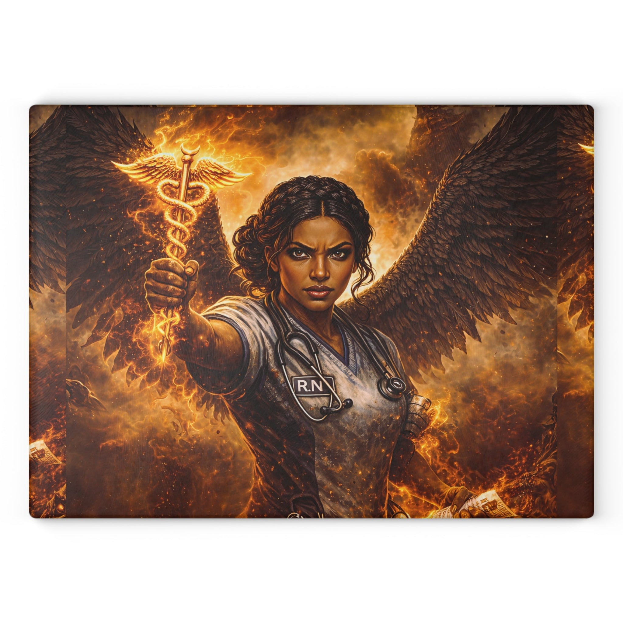 Home DecorShe doesn’t just clock in—she descends. This glass cutting board showcases a fierce RN in scrubs, wings unfurled...Regular price $47.77 USDSale price $47.77 USD Regular priceUnit price per -