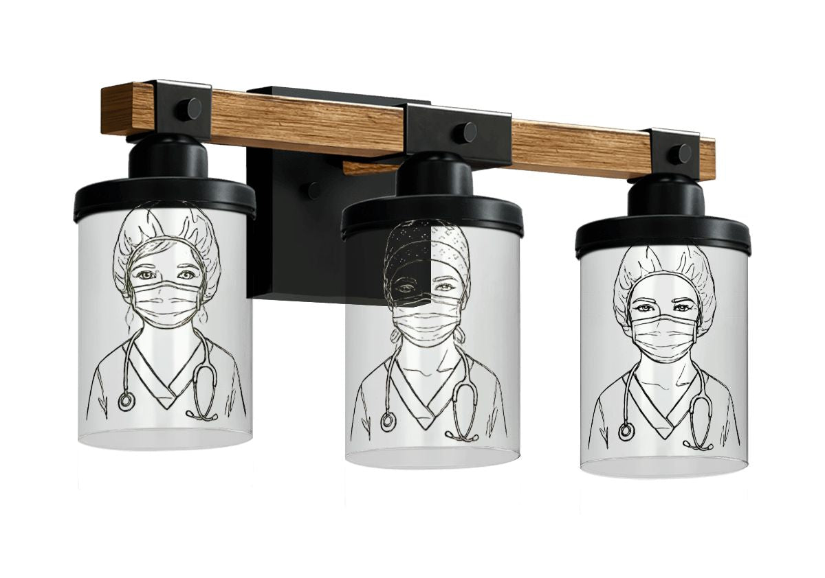 Healthcare Tribute Light Fixture, Nurse Wall Sconce, Medical Art Lighting, Premium Wooden Mount
