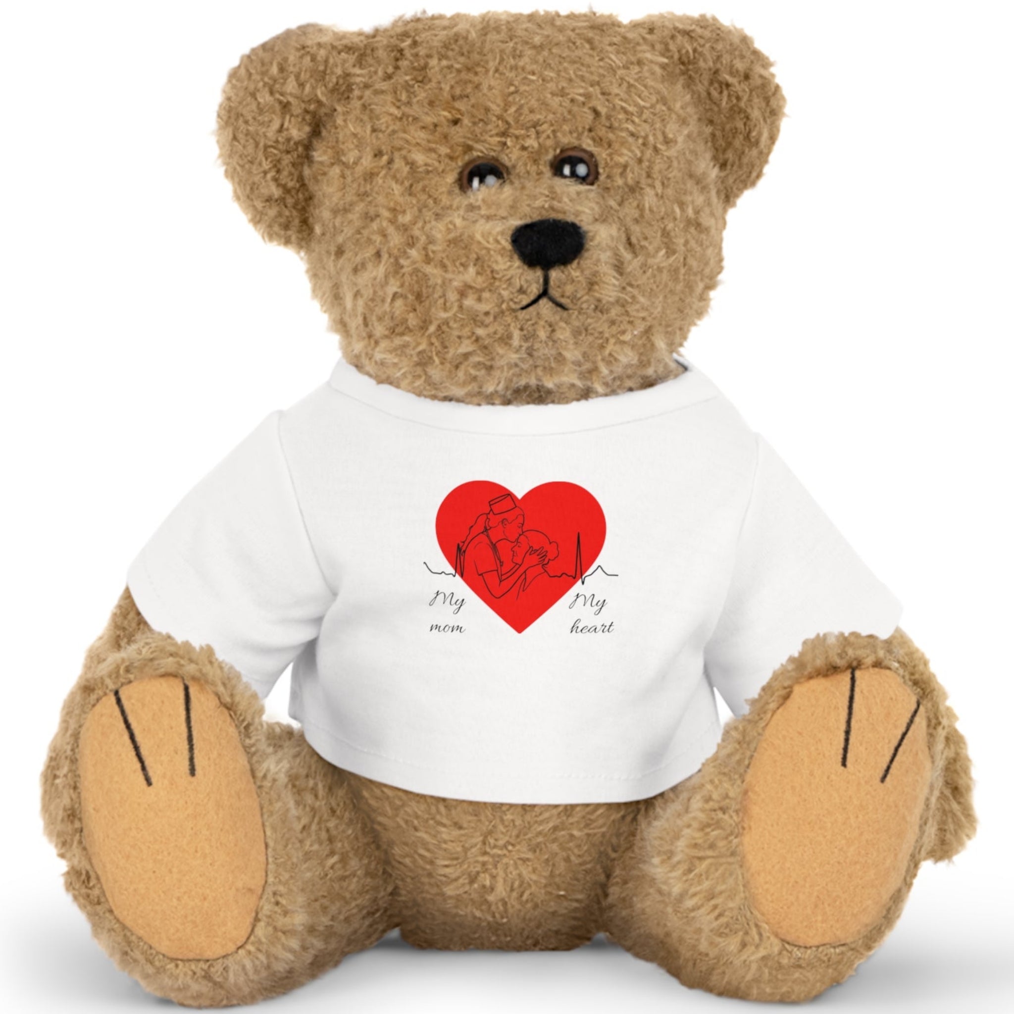 Stuffed Bear – 'My Mom, My Heart' Heart T‑Shirt Plush