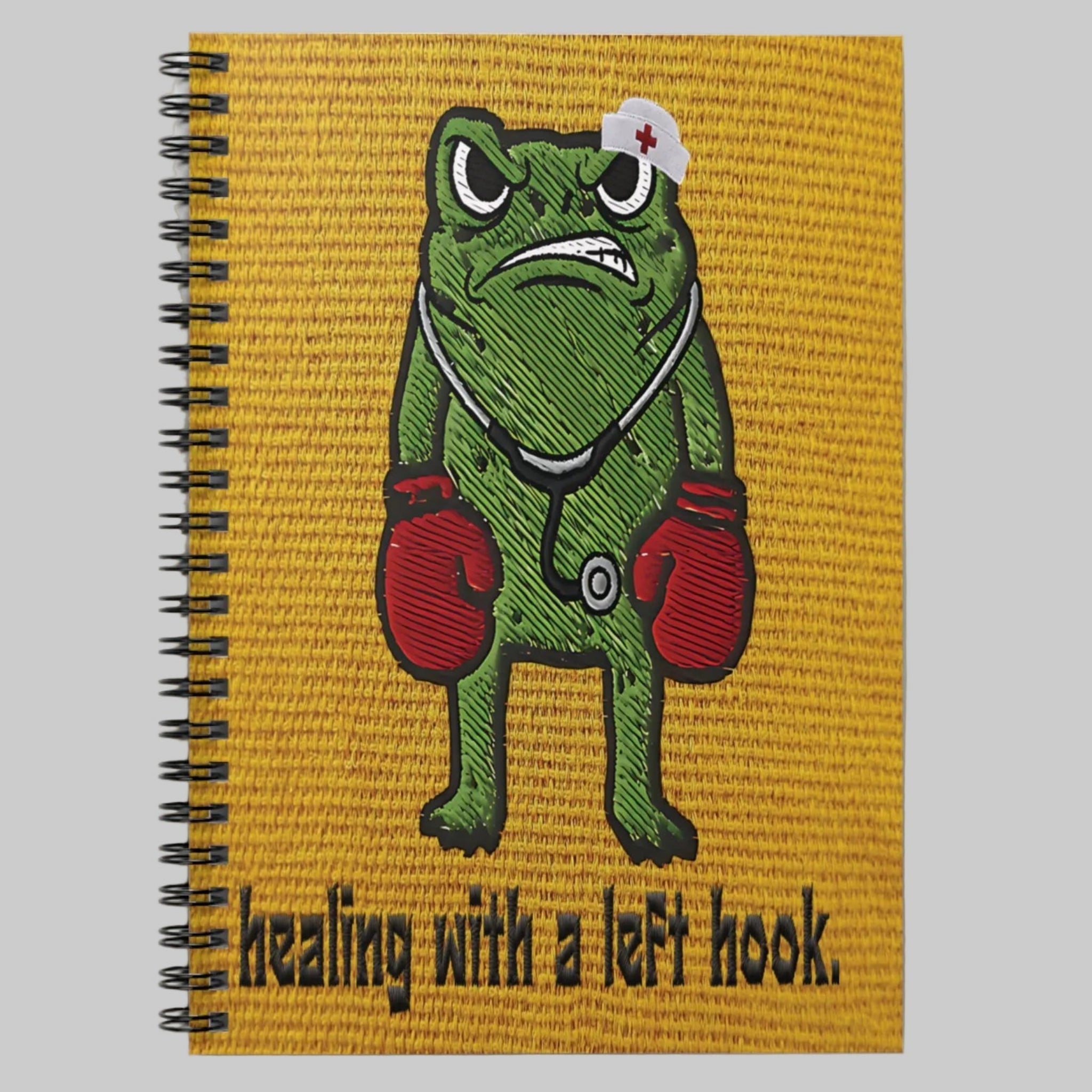 Nurse Frog Spiral Notebook — "Healing With a Left Hook" Ruled Journal