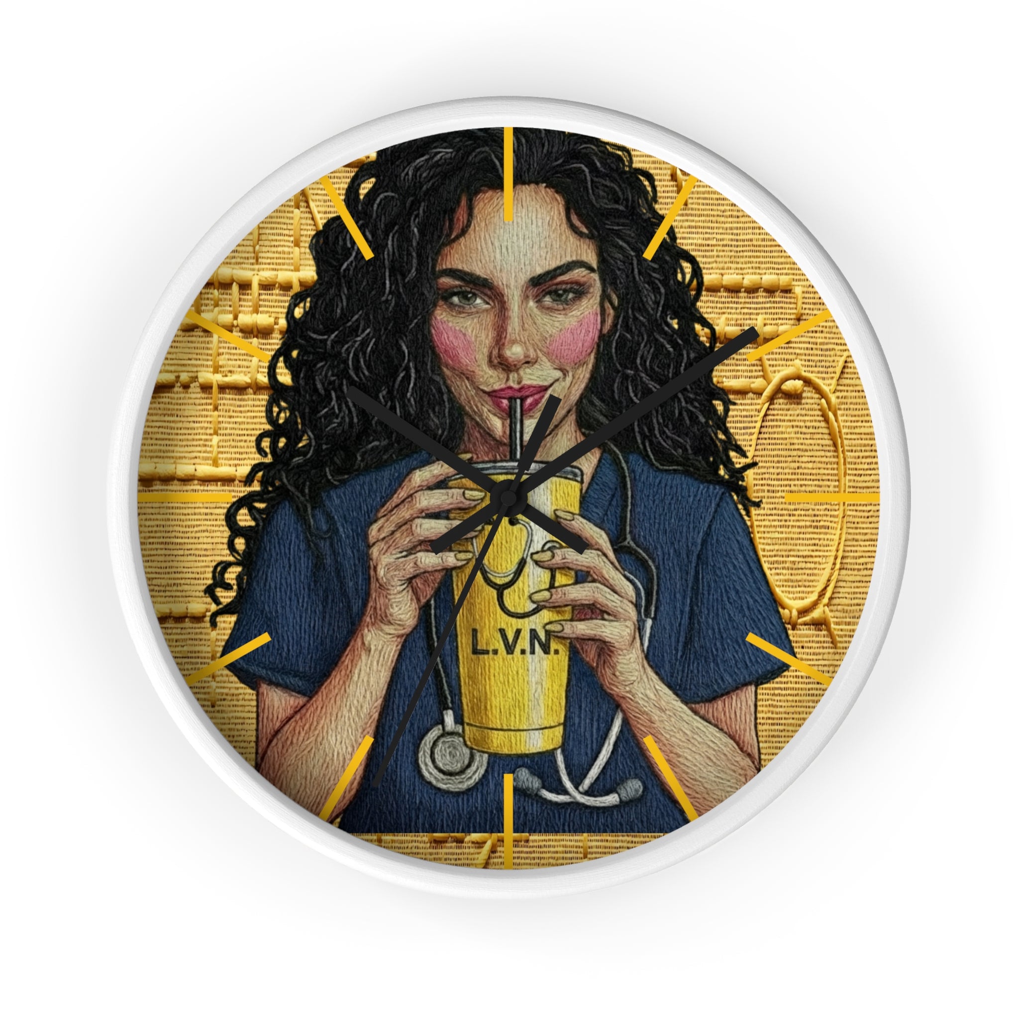 Wall Clock —RN Nurse Drinking Illustration | Gift for Nurses