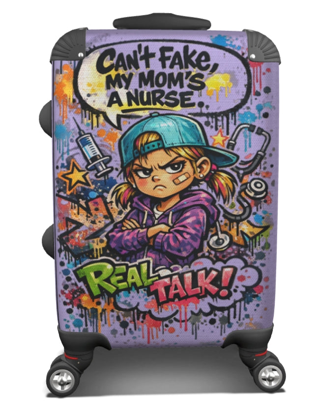 She’s frustrated, she’s busted, and she knows it — Mom’s a nurse, and she sees right through every fake cough. This suitcase blends graffiti textures, bright colors, and a confident kid character to create a fun, meaningful travel piece. Lightweight, durable, and full of attitude, it’s a highlight of the BluTokyo Medical Street Series.