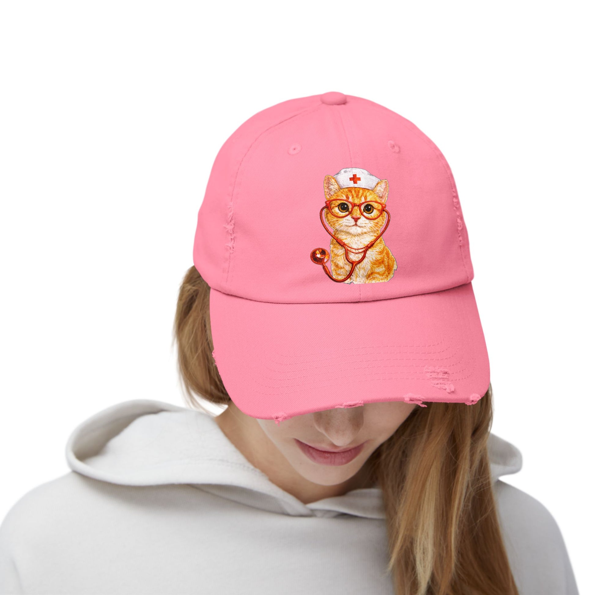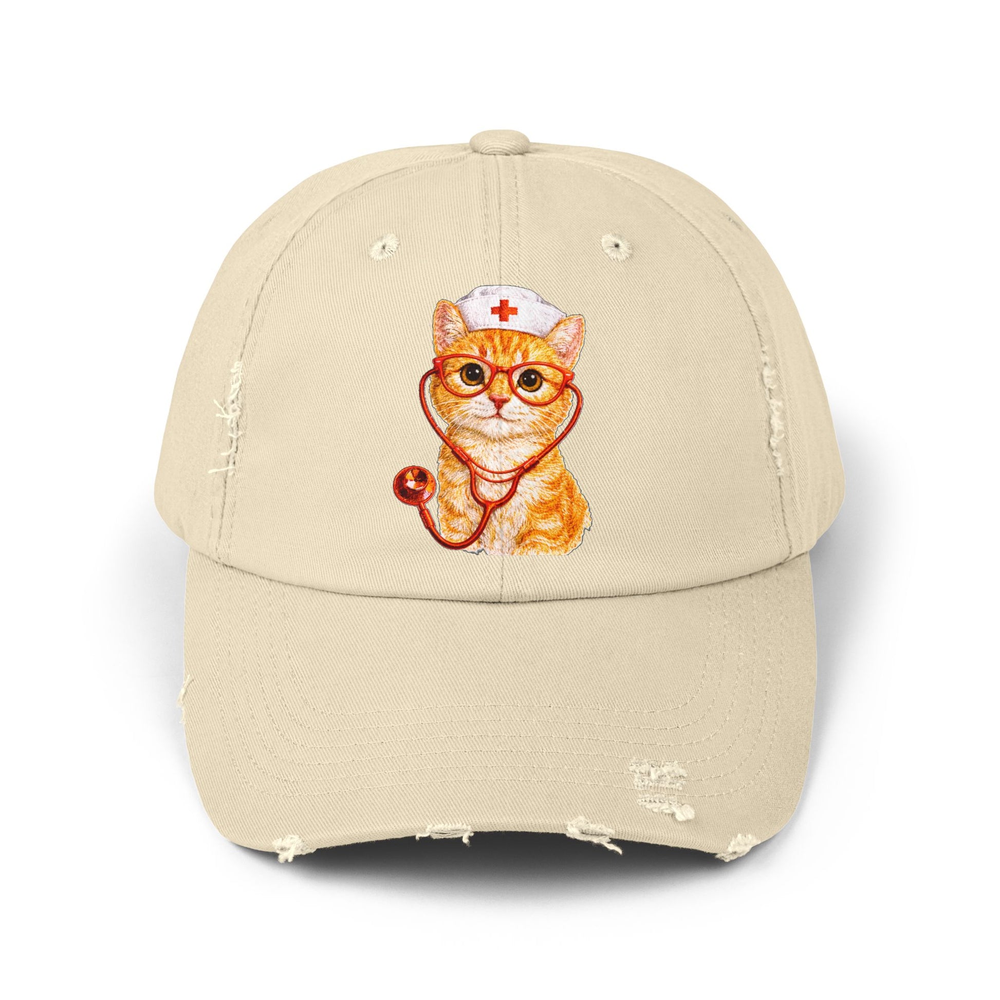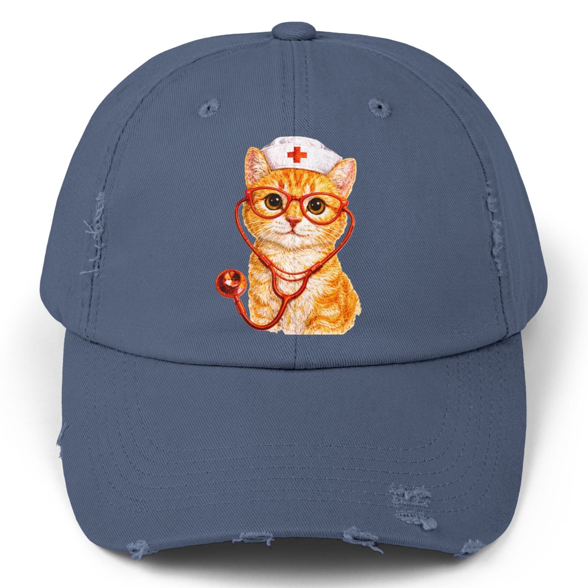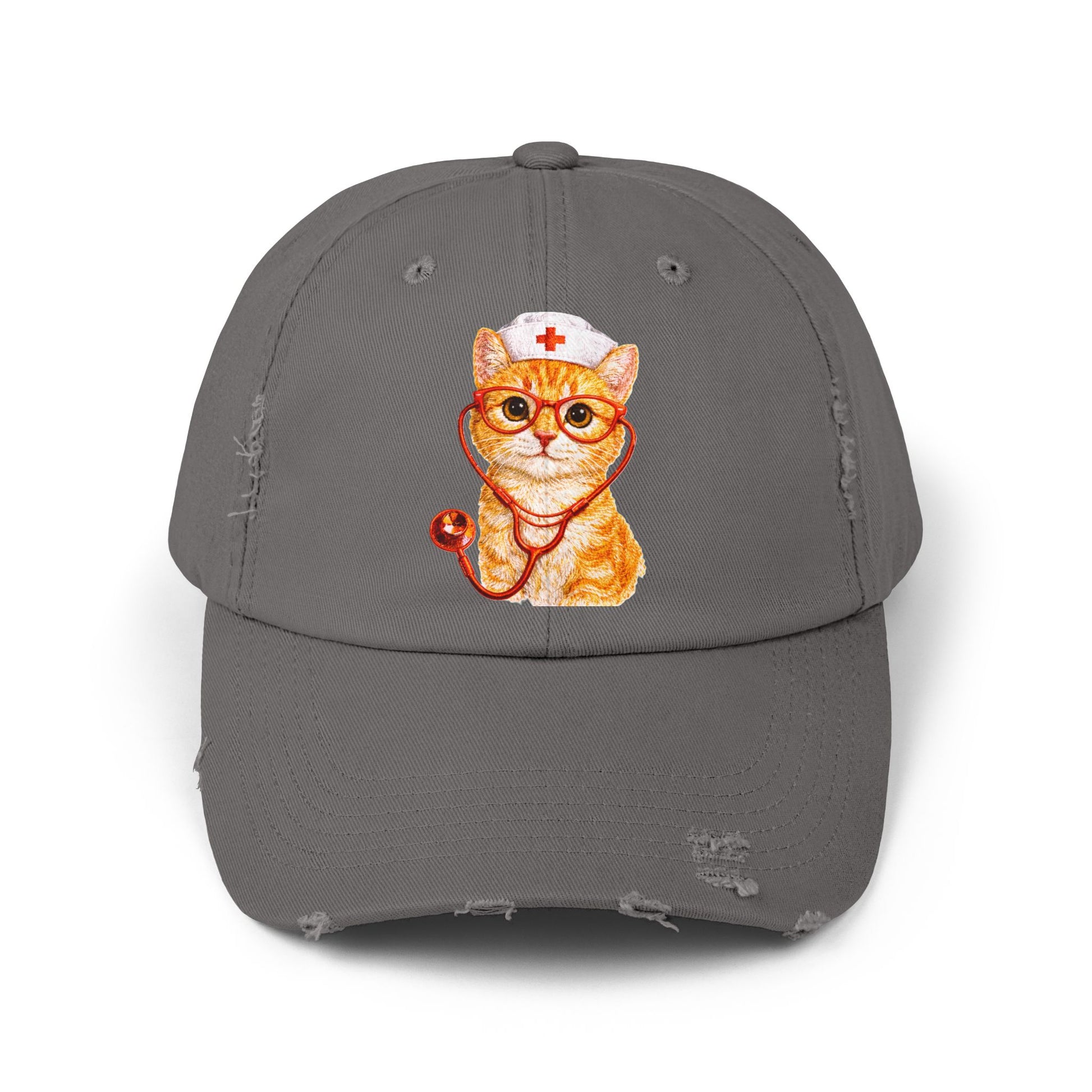 Nurse Cat Distressed Cap – Cute Kitty Nurse Baseball Hat