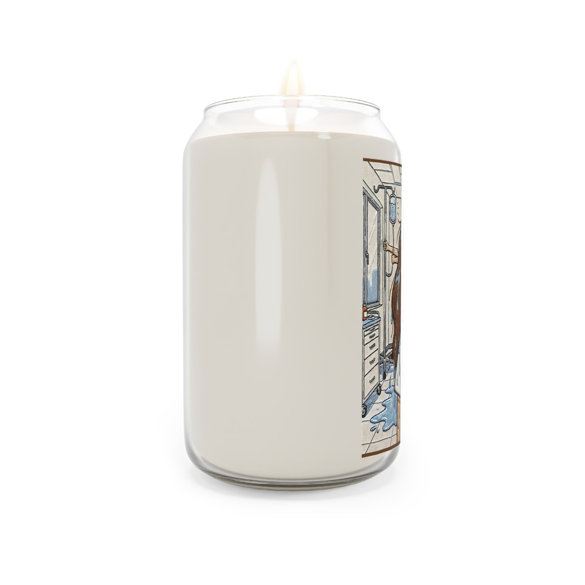 For the nurse who’s been soaked, slammed, and still showed up. This candle’s label features a wide-eyed healthcare warrior mid-downpour—scrubs drenched, stethoscope sagging, and a speech bubble that says it all: “literally questioning every life decision.” Set in a chaotic hospital room, it’s embroidered-style drama meets real-life burnout. Light it when the shift hits hard and the existential dread hits harder. You’re not alone. You’re legendary.